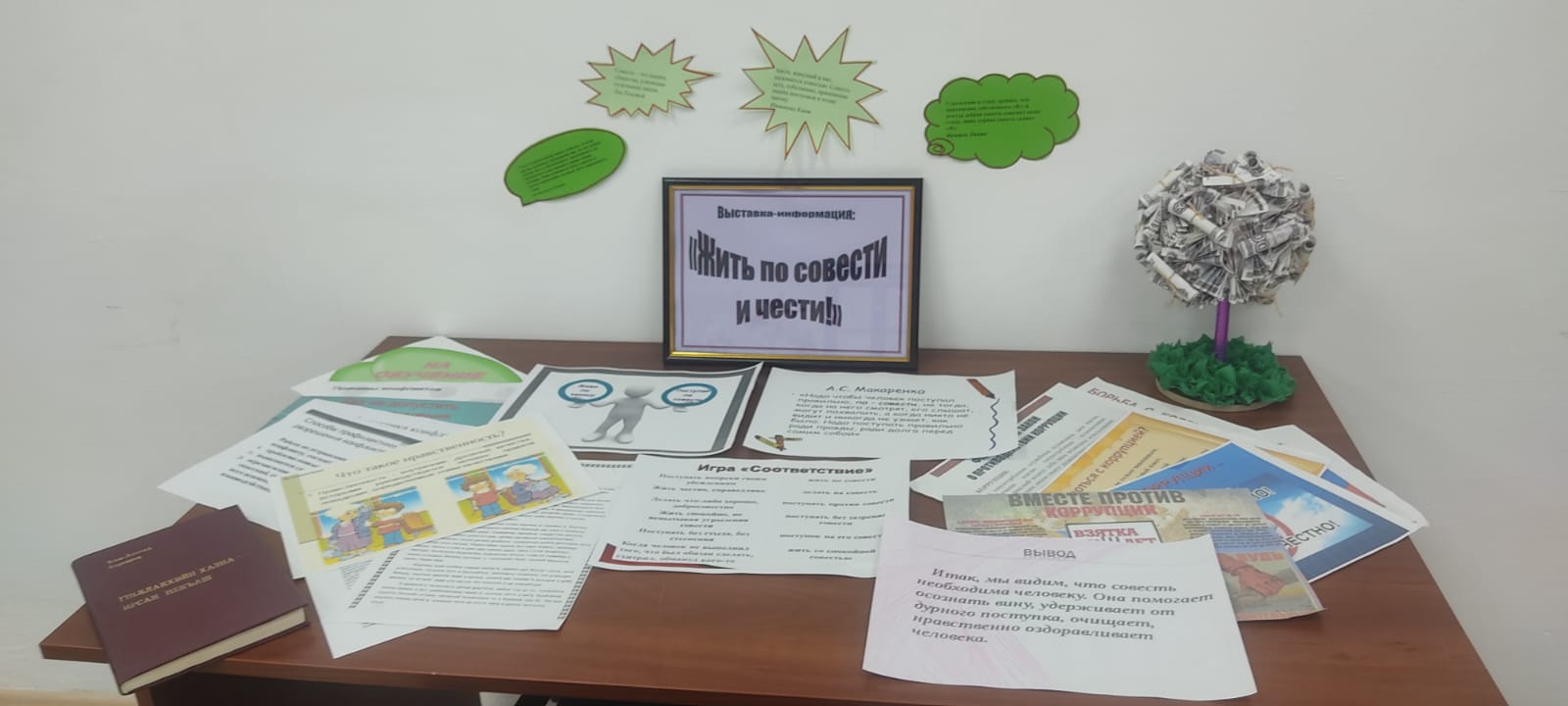 В Филиале №36, с. Ножай-Юрт заведующая филиалом оформила информационную выставку на тему: «Жить по совести и чести!»