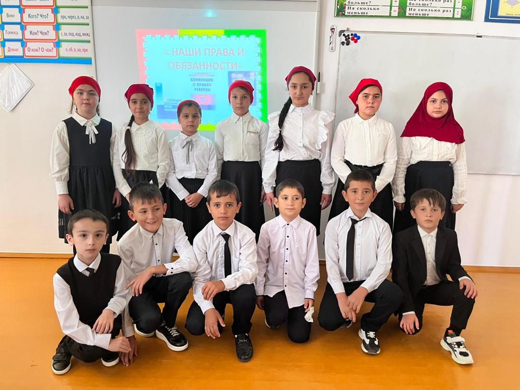 В рамках Десятилетия детство с начало учебного года заведующая филиала №33, с. Галайты, Ахмедова Х.У посетила учащихся четырёхклассников средней школы с. Галайты где провела викторину на тему: «Права и обязанности ребёнка» Целью мероприятия было воспитывать школьников в игровой форме знаний своих прав обязанности.
