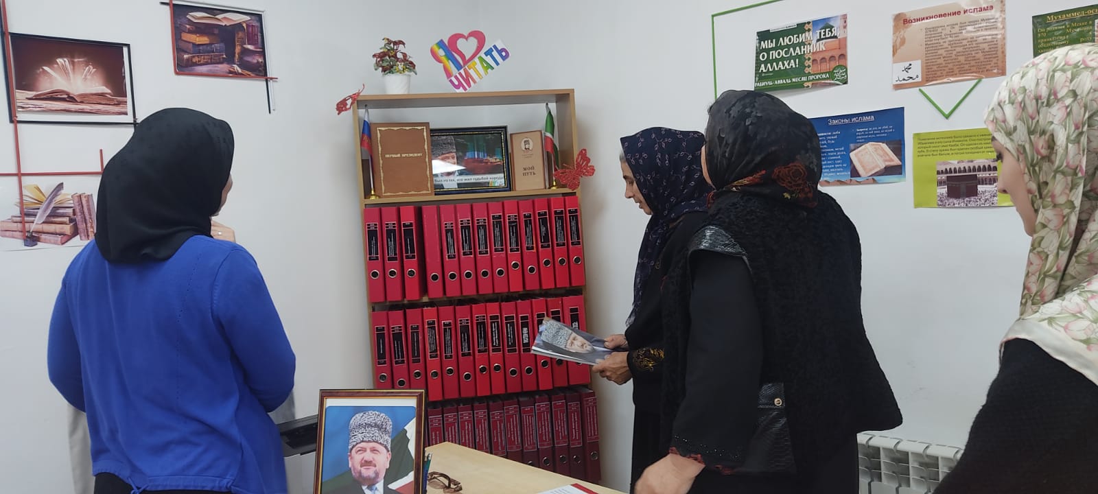 Заведующая филиалом №18, с. Рогун-Кажа, ко Дню памяти и скорби народов Чеченской Республики провела обзор книжной выставки на тему: «Он ушел не побежденным», посвященная памяти Первого Президента ЧР, Героя России, Ахмата-Хаджи Кадырова.