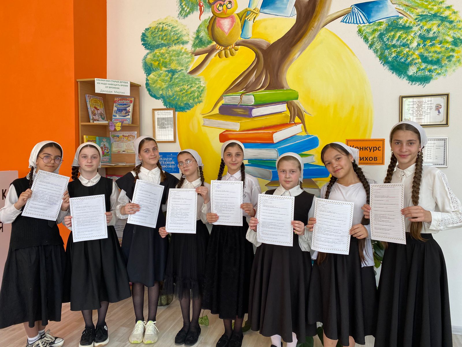 В Филиале №24, Турты-Хутор провели с учащимися обзор-книжной выставки на тему: «Жизнь и творчество публициста Аюба Джунаидова Турты-Хутор зажигает звезды».