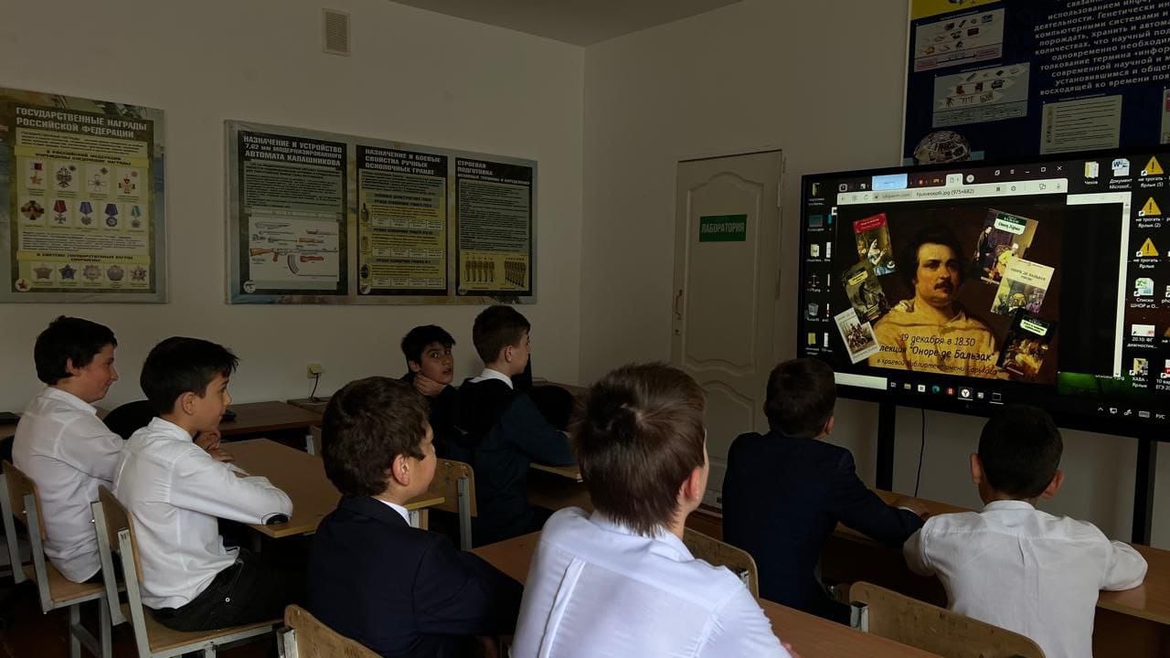 В рамках Десятилетия детства библиотекарь отдела обслуживания провела мероприятие с учениками 7а класса в МБОУ СОШ №3, с. Ножай-Юрт. Организовала и провела Литературный час «Оноре де Бальзак» в честь 225-летия со дня рождения выдающегося французского писателя Оноре де Бальзака.
