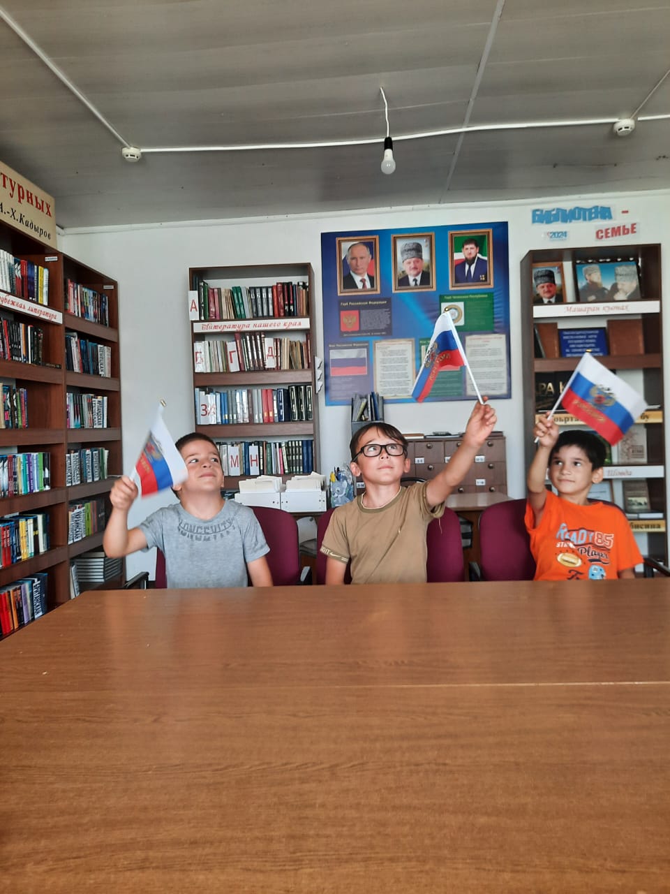В рамках десятилетия детства В Филиале №34, с. Замай-Юрт заведующим филиала совместно с работниками культуры проведена информ-беседа «История триколора» к Дню Государственного флага.