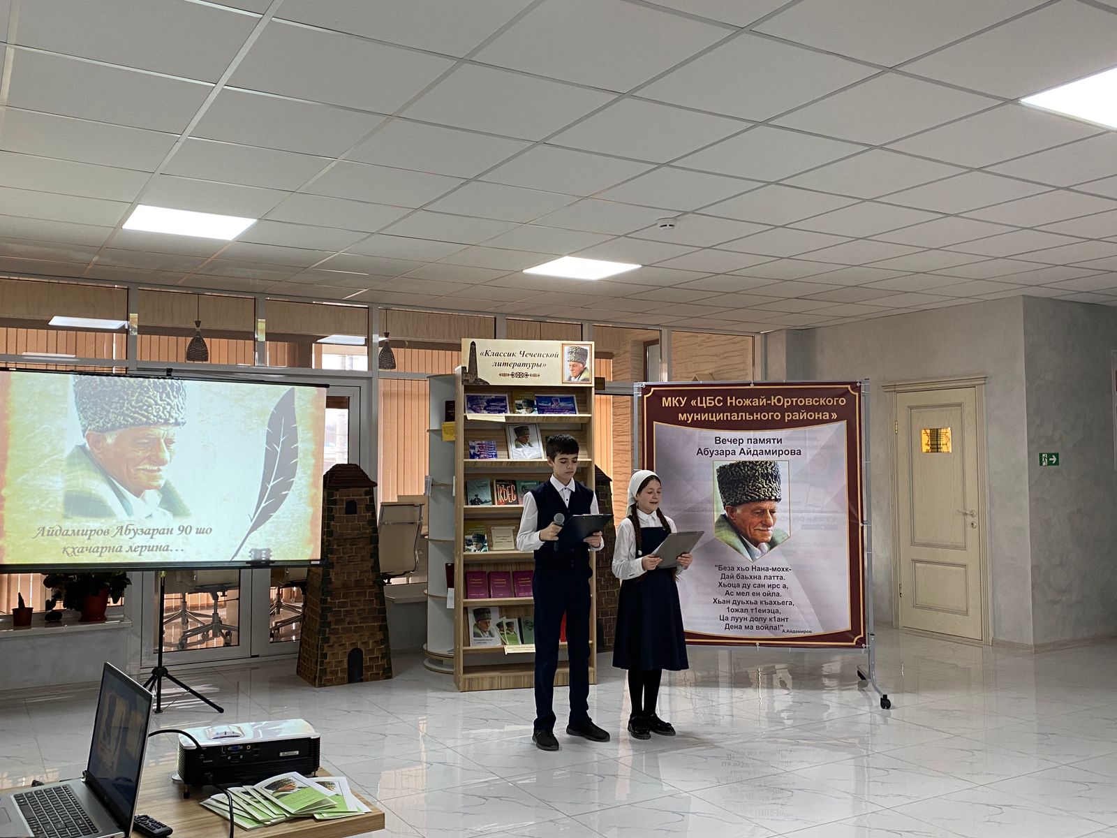 Абузар Айдамиров–народный писатель, прозаик, поэт, публицист, известный общественный и политический деятель, классик чеченской литературы. В честь Дня рождения великого писателя работники Центральной детской библиотеки и Центральной районной библиотеки организовали и провели литературно-музыкальную композицию «Къоман иэсехь вехар ву Абузар».