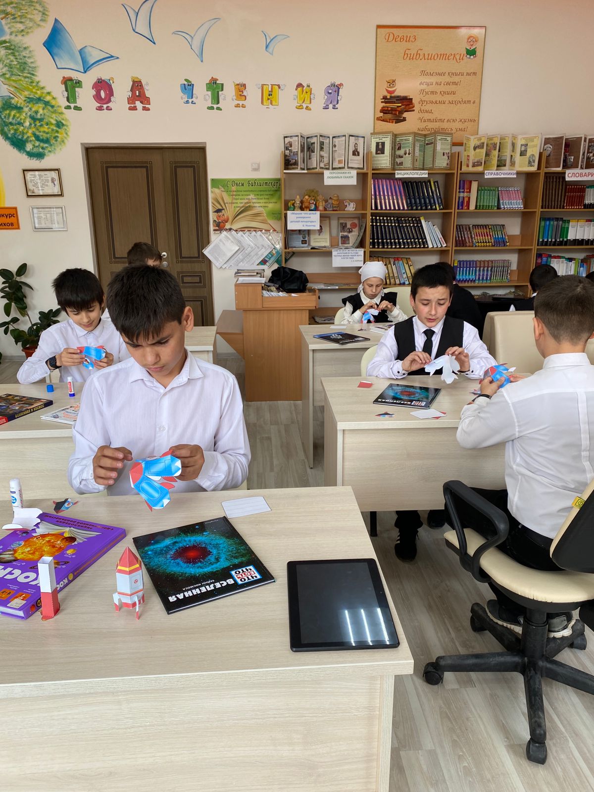 В честь празднования Дня космонавтики с участниками читательского клуба «Очумелые ручки» в Центральной детской библиотеке был проведен мастер-класс «Космонавтам дорога во Вселенную». Мастер-класс сопровождался увлекательной историей развития космонавтики. Совершив путешествие по страницам иллюстрированных энциклопедий, дети узнали много нового о космических объектах и планетах Солнечной системы. Охват - 9 человек.