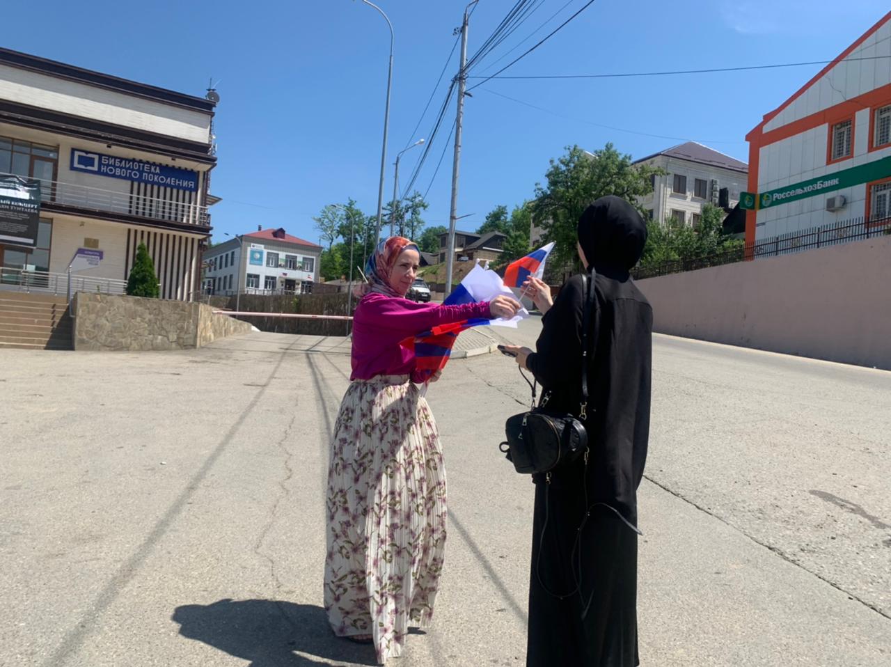 Однако, акция не ограничилась только библиотекой. Библиотекарь вышла на улицу и раздала прохожим флаги России. Это вызвало не только положительные эмоции у людей, но и помогло повысить патриотическое настроение прохожих. Охват - 15 человек.