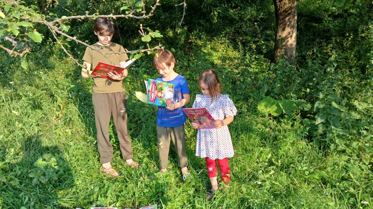 В Филиале №11, с. Беной совместно с детским оздоровительным лагерем «Горный Беной» провёли встречу на природе с детьми на тему: «Читающее детство». Лето – замечательная пора! Для детей это вообще любимое время года. Ведь летом самые большие каникулы и много свободного времени, которое можно провести за чтением интересных книг.