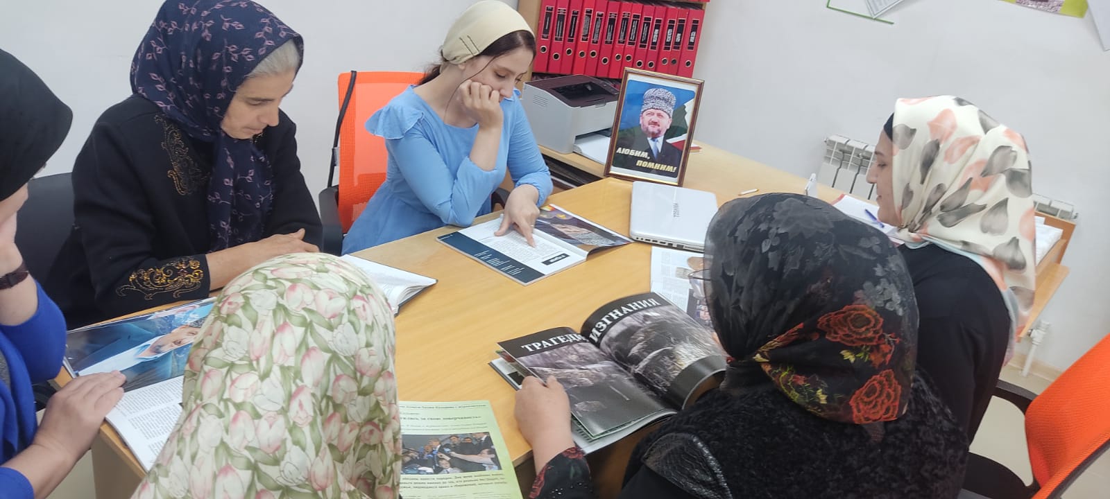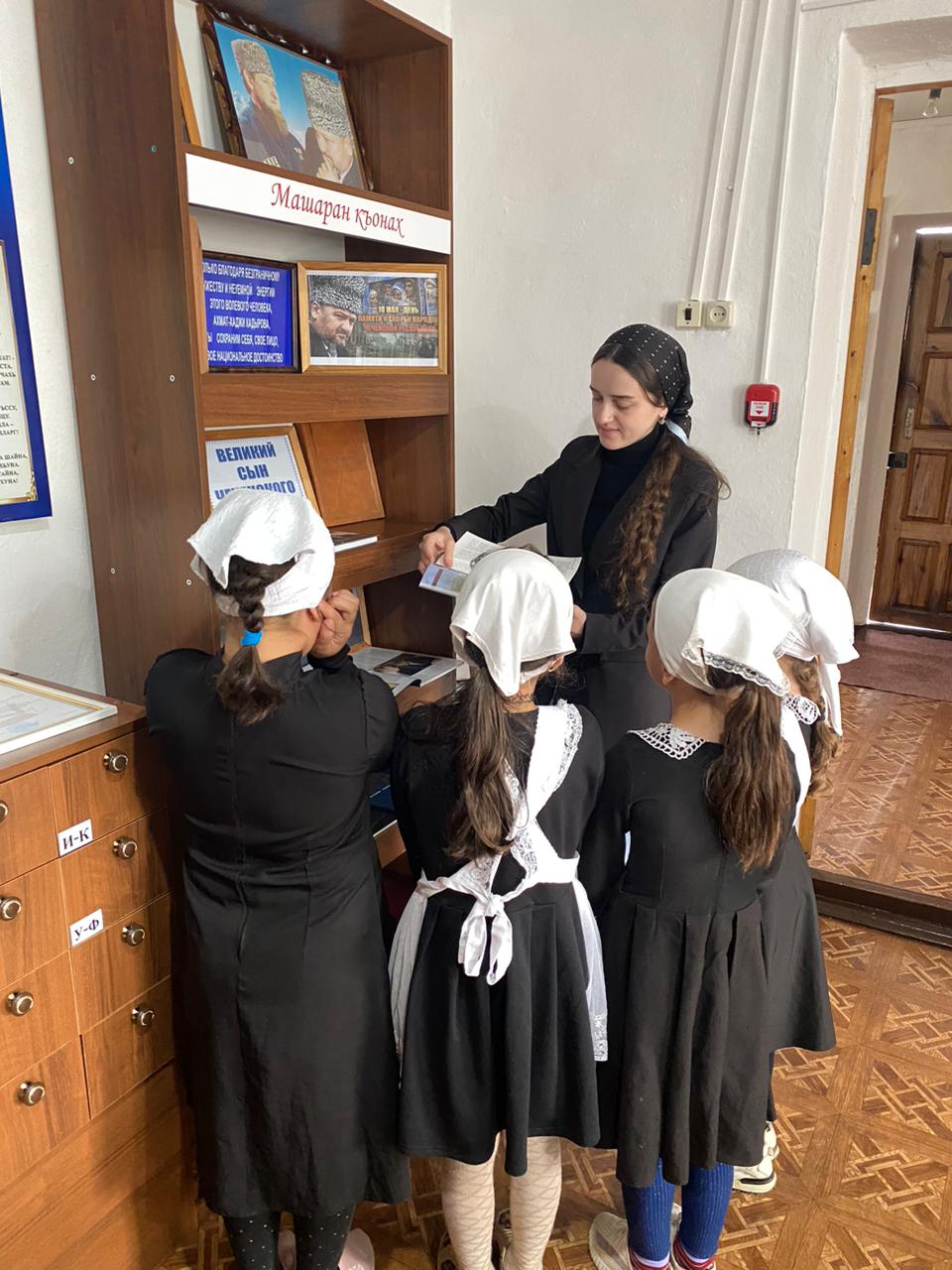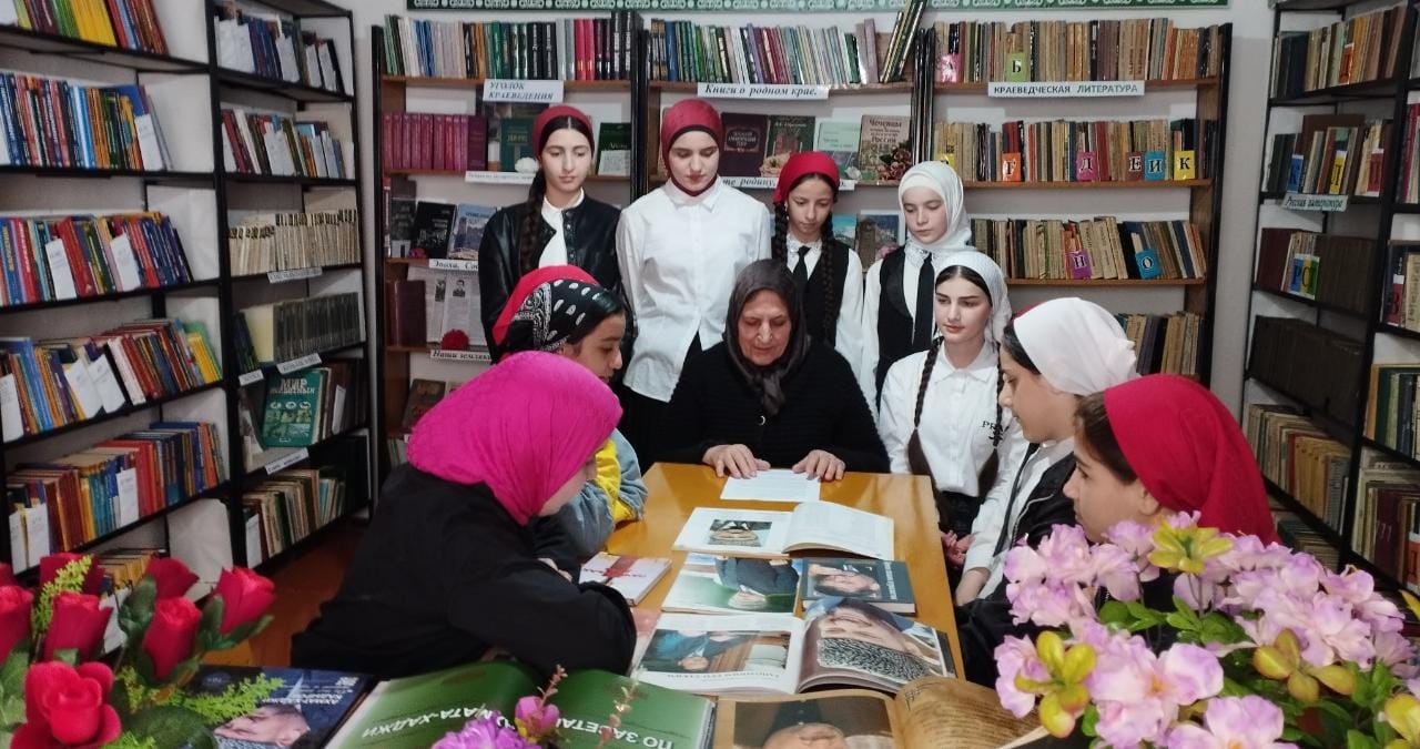 Заведующая филиалом №18, с. Рогун-Кажа, ко Дню памяти и скорби народов Чеченской Республики провела обзор книжной выставки на тему: «Он ушел не побежденным», посвященная памяти Первого Президента ЧР, Героя России, Ахмата-Хаджи Кадырова.