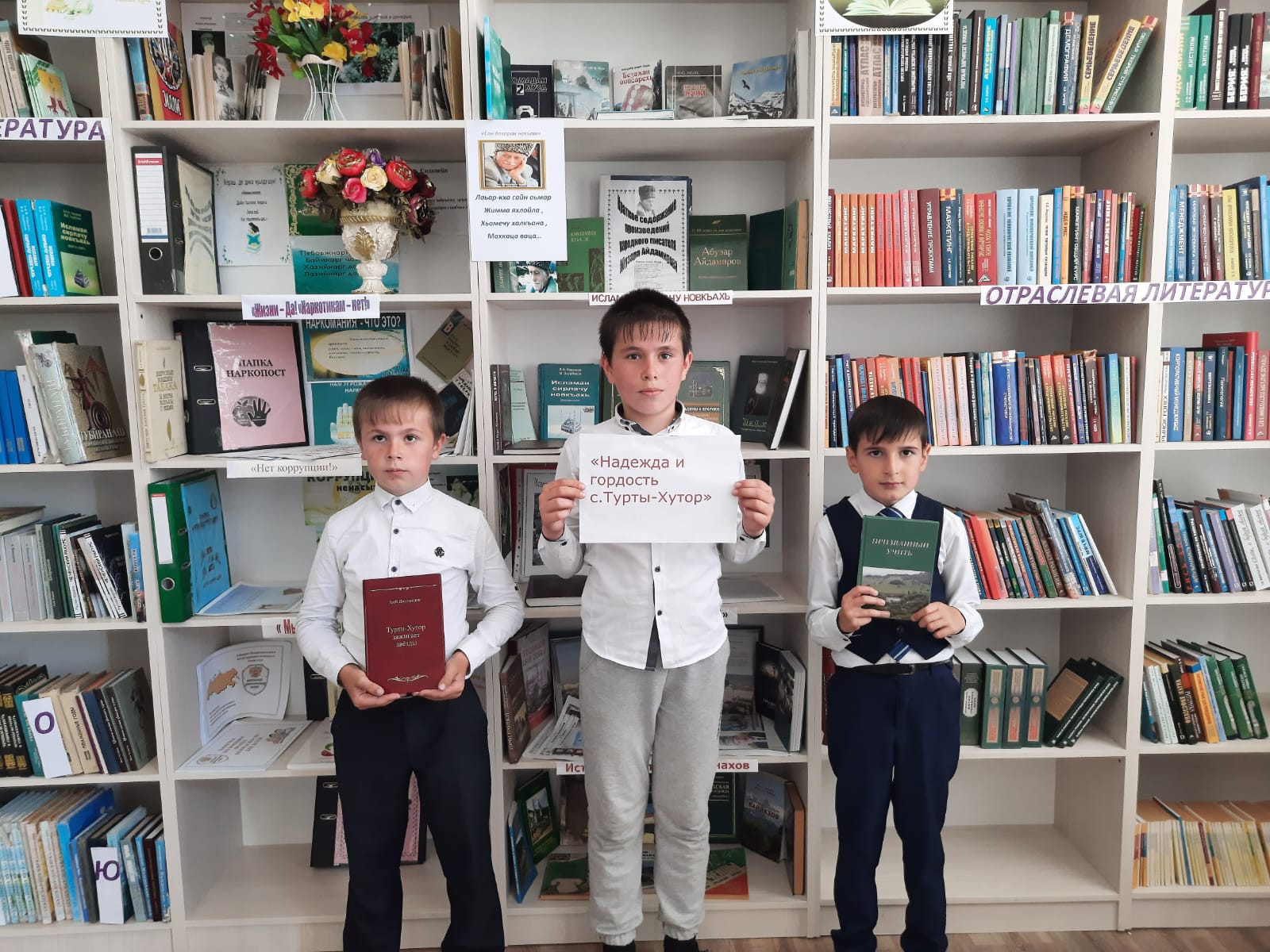В Филиале №24, Турты-Хутор провели с учащимися обзор-книжной выставки на тему: «Жизнь и творчество публициста Аюба Джунаидова Турты-Хутор зажигает звезды».