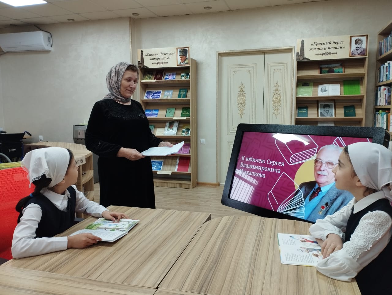 13 марта исполняется 110 лет со дня рождения поэта, драматурга, баснописца. В Центральной районной библиотеке села Ножай-Юрт, библиотекарь Даудова Белита провела мероприятие «Поэт детства», посвященное к 110-летию со дня рождения Михалкова.