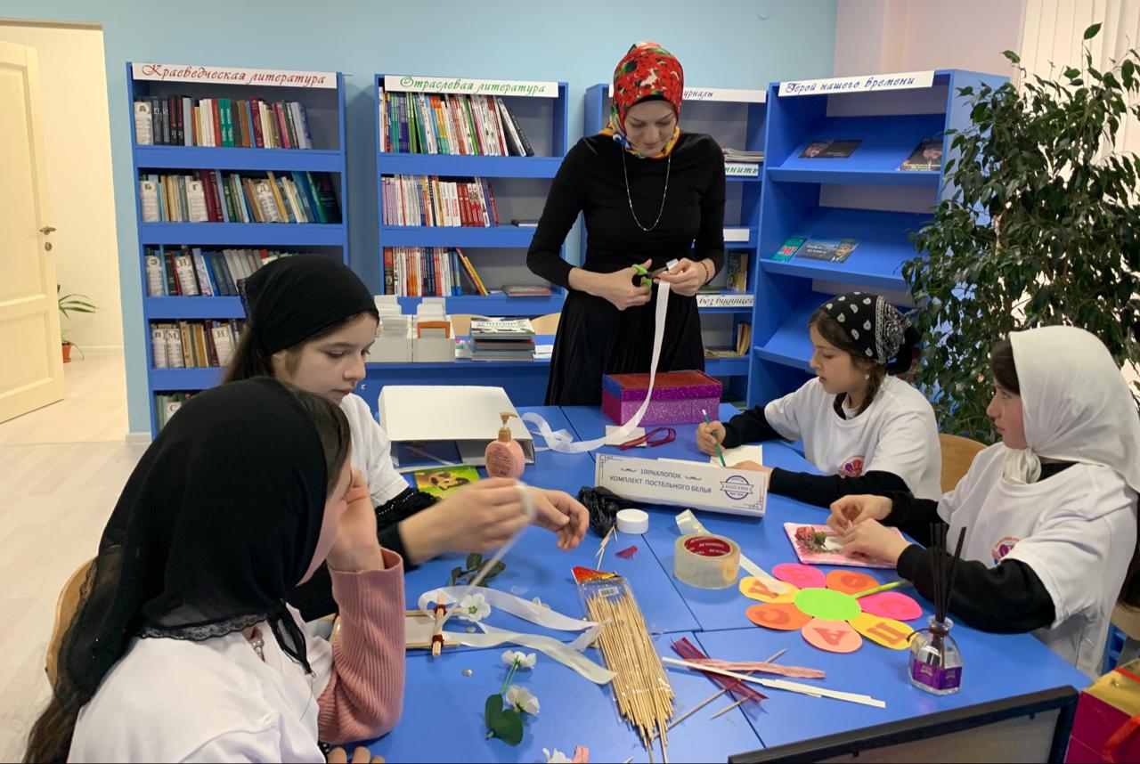 В рамках Республиканской ассоциации союзов читателей при Министерстве культуры ЧР, в Филиале №32, с. Мескеты ДБ, заведующая филиала провела с детьми мастер-класс международному женскому дню «Мы с мамочкой в рамочке».