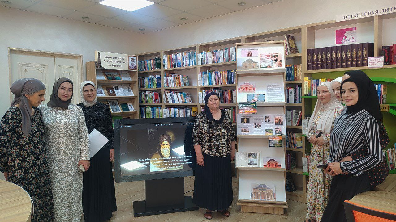 В отделе обслуживания Центральной районной библиотеки провели библиографический обзор «История Устаза Кунта-Хаджи Кишиева (да будет возвышена его святость) и оформление уголков.