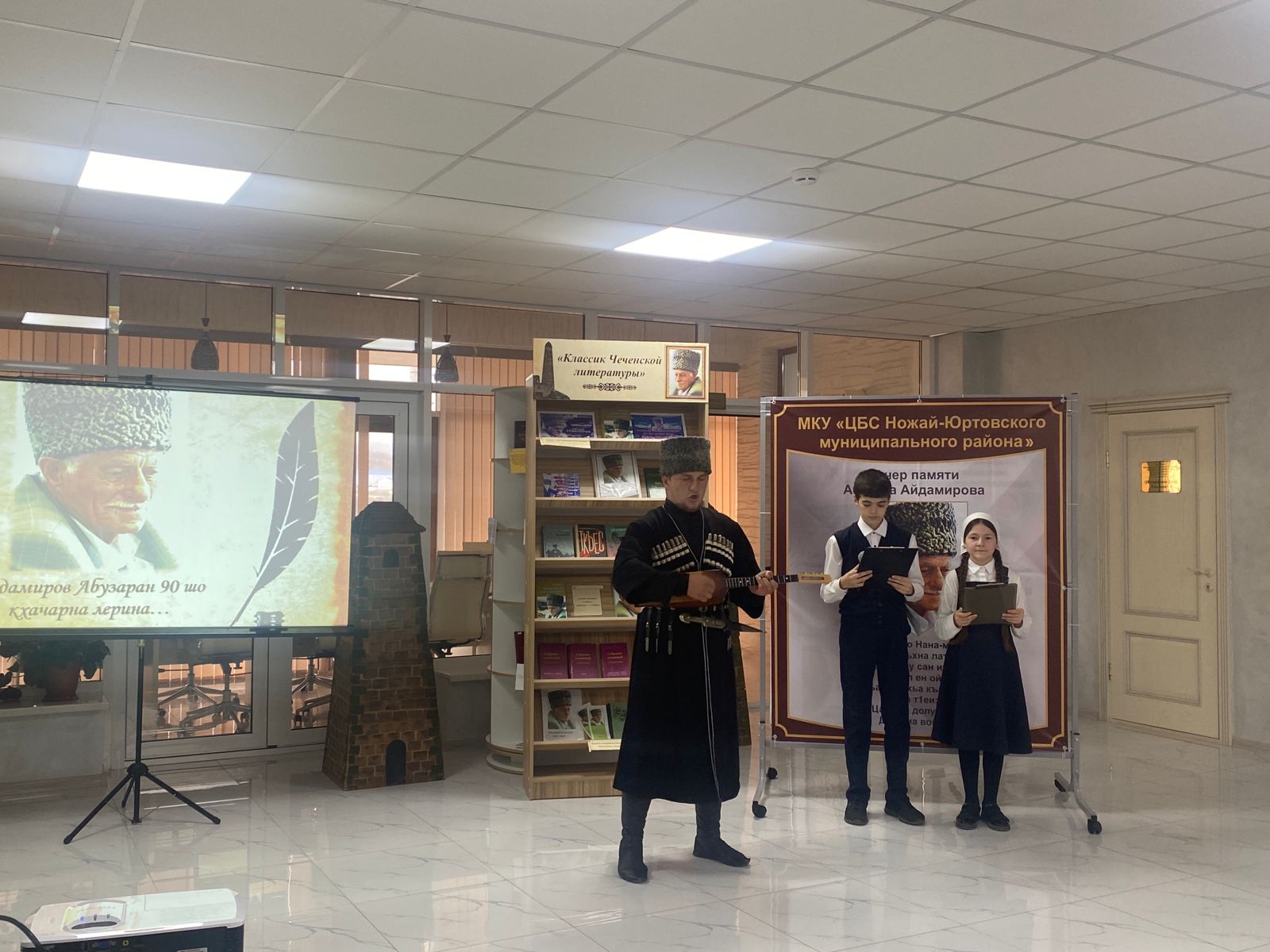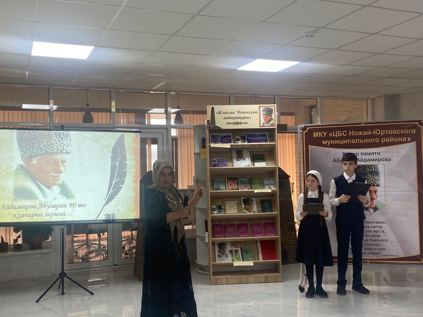 Абузар Айдамиров–народный писатель, прозаик, поэт, публицист, известный общественный и политический деятель, классик чеченской литературы. В честь Дня рождения великого писателя работники Центральной детской библиотеки и Центральной районной библиотеки организовали и провели литературно-музыкальную композицию «Къоман иэсехь вехар ву Абузар».