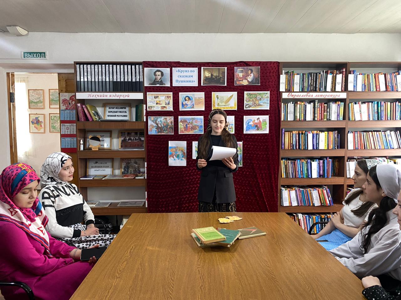 Заведующая филиалом №34, с. Замай-Юрт в рамках программы «Пушкинская карта», подготовила и провела литературную игру-путешествие: «Круиз по сказкам Пушкина», посвящённую сказкам великого русского поэта Александра Сергеевича Пушкина.