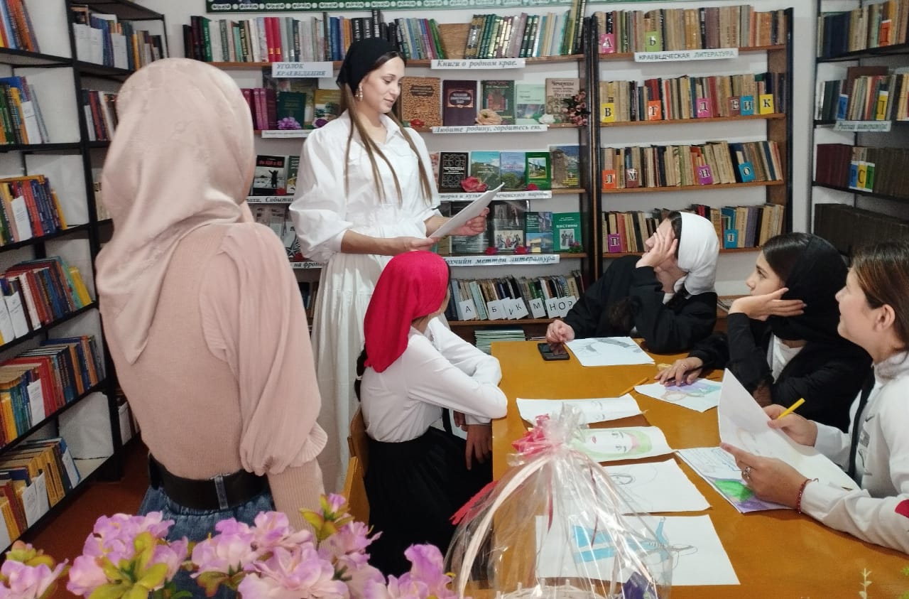 В Филиале №10, с. Алхан в целях духовно- нравственного воспитания подрастающего поколения, привития любви к своим национальным традициям, а также чуткого и внимательного отношения к женщине- матери, 18 сентября в сельской библиотеке прошел вечер, посвящённый Дню чеченской женщины: «Ты одна такая, любимая и родная»